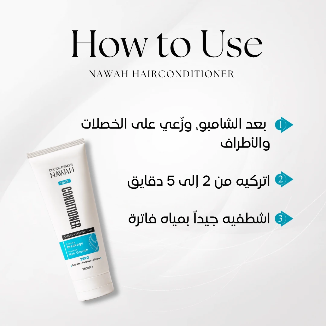 - بعد غسل الشعر بالشامبو، ضعي كمية مناسبة من البلسم على الشعر الرطب.