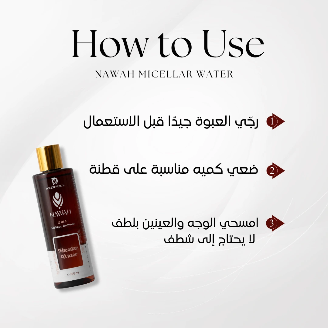 ماء ميسيلار ومزيل المكياج من نواة غني بمضادات الأكسدة، يساعد على تنظيف البشرة بعمق من آثار مستحضرات التجميل، حتى المكياج المقاوم للماء، دون ترك أي أثر دهني. بفضل تركيبته الفريدة، يحافظ على ترطيب البشرة لفترة طويلة بفضل زيت نواة البلح وحمض الهيالورونيك. كما يعمل على تفتيح وتوحيد لون البشرة بفضل الألفا أربيوتين ومستخلص الخيار.