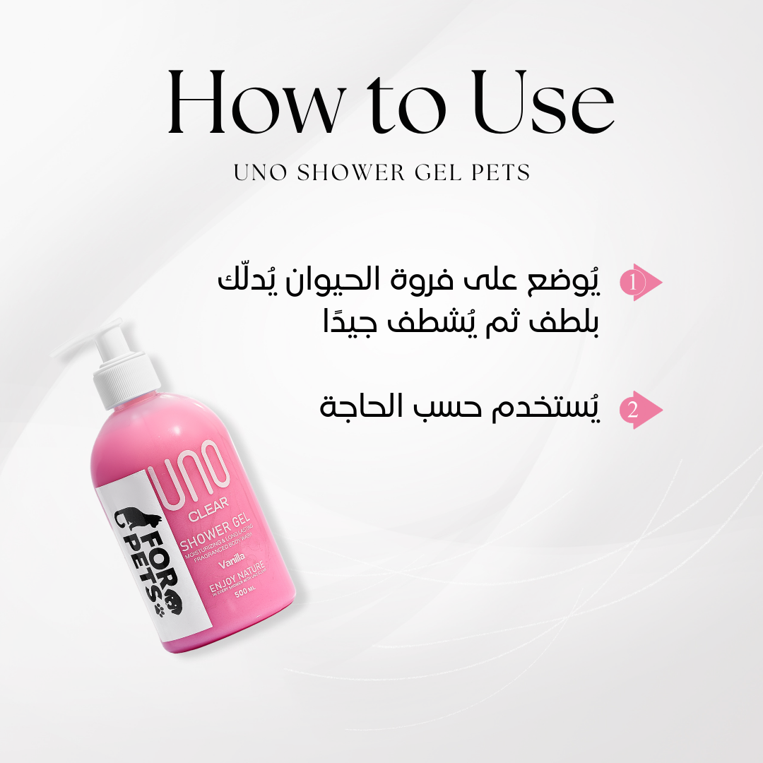 اول شاور جل كريمي في مصر مخصص لل PETS شاور جل أونو للحيوانات الاليفة بيمنح حيوانك الاليف عناية خاصة بتركيبة لطيفة وآمنة تحتوي على مستخلص الخيار والالوفيرا بتركيز اعلى لتهدئة الجلد وحمايته مع البانثينول والجلسرين اللي بيرطبوا الفروه بعمق تركيبته كريمي بكوكاميد و كوكو جلوكوزيد تنظف برفق من غير ما تسبب تهيج وتخلي الشعر ناعم وصحي مع احساس بالانتعاش