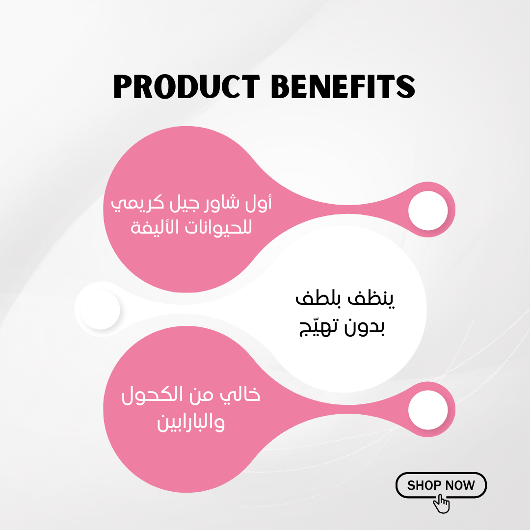 الخصائص / المميزات : 1-قوام كريمي بمستخلصات زيت جوز الهند والالوفيرا بتركيزات طبية 2-الوان آمنة محببة للحيوانات الأليفة